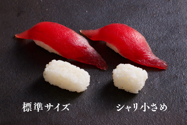 お腹いっぱいになってもらいたい!という思いから、「すし上等」のシャリは少し大きめに握っております。小さめのシャリを希望の場合は、ご遠慮なくお申し付けください。